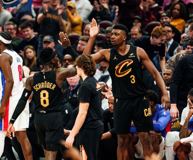 让凯尔特人和尼克斯在另一半区自相残杀,骑士坐收渔翁之利是最好的方式。第二,在剩余赛程难度并不大的情况下,骑士可以适时安排哈登轮休,给阿伦充足的休息时间,因为替补席施罗德带着托布+小波特几人表现很稳定,梅里尔+泰森也能提供稳定的外线输出,确保季后赛到来前,全员保持健康。骑士在最近13天打了8场比赛,战绩5胜3负,全员确实很累,接下来赛程就没那么难了,米切尔也即将复出,球队有4天休息时间,一切都朝好的方向发展,去冲击总冠军吧!